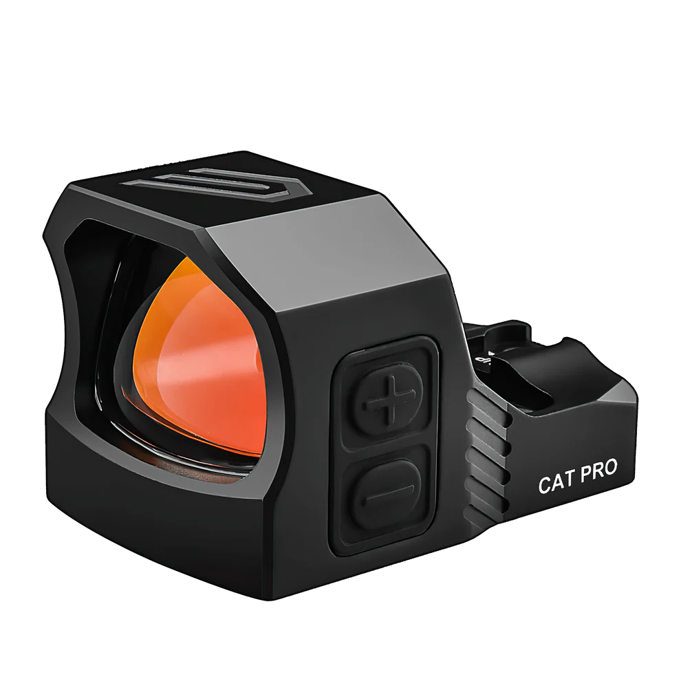 The Cyelee CAT PRO red dot Micro Red Dot Sight is an ultra-compact open-reflex sight, designed for compact and subcompact pistols. It offers robust reliability, purpose-built for duty and professional use, and ready for any environment. Improved target acquisition, intuitive controls, and innovative electronics allow you to defend yourself, and others, confidently. The CAT PRO red dot is easily installed on optics-ready slides or mounts compatible with Shield RMSc or JPoint footprints. It is equipped with advanced MDS Mode(Motion Deactivated Standby) technology, to ensure it's also ready to go in the split second you are! While on, the sight automatically sleeps after 4 minutes of non-activity but quickly comes back to life as soon as it is moved. Its high-quality potted and waterproof electronics, and our own "Super LED" ensure up to 50,000-hours battery runtime.