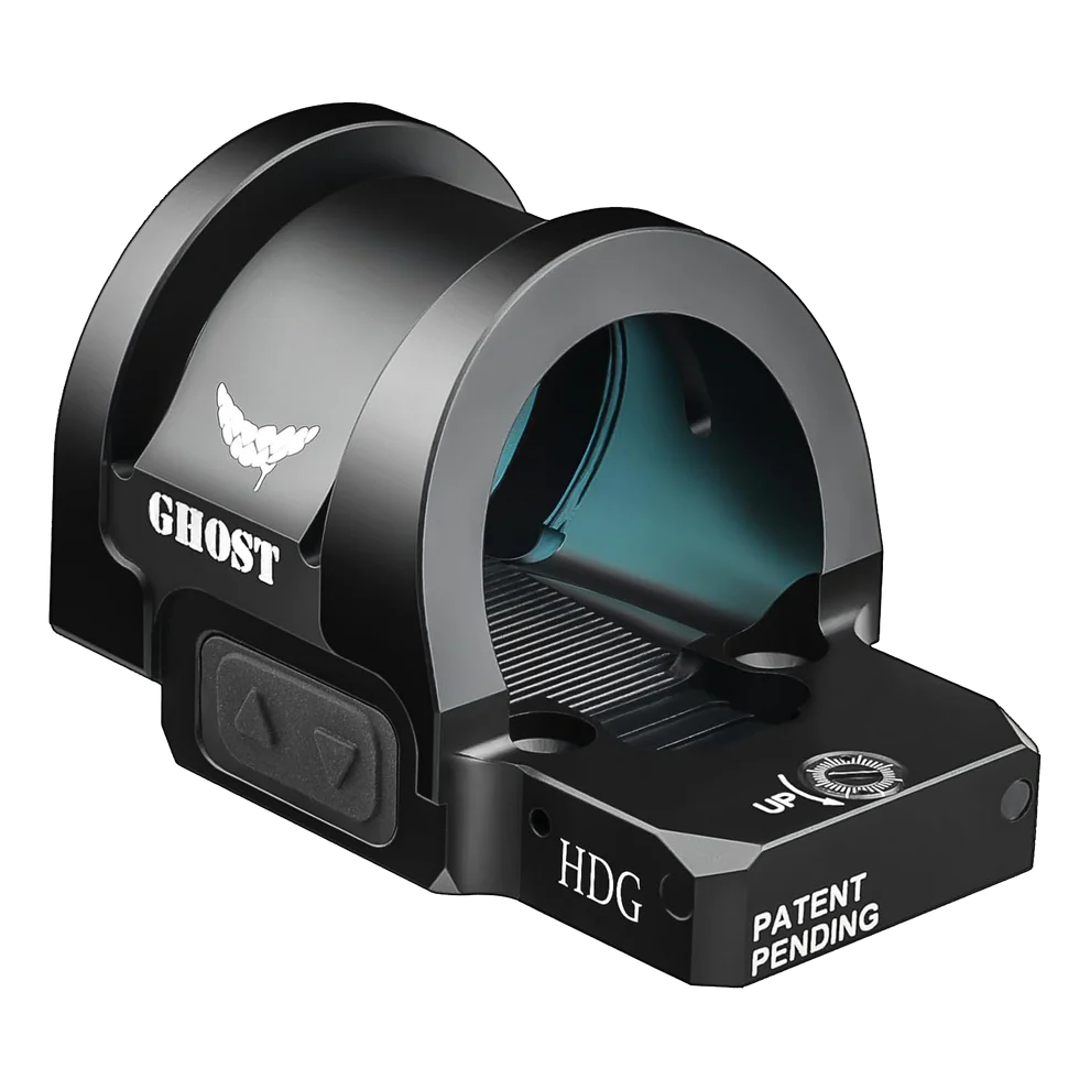 - The GHOST HDG red dot utilizes an oversized glass with a width of 26.5mm, delivering a significantly larger field of view. It has the Click MOA system with 1MOA per click. It has a Variable Reticle Technology (VRT) 2MOA red dot, 24MOA Circle, or both.